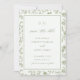 Tillägg tidlös elegans till din speciella dag med denna chinoiserie-inspirerade bröllopsinbjudan, med en delikat grön blomstertoalettkant på en elfenbensvit bakgrund.