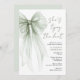 Fira bruden med denna charmiga bröllopsinbjudan med en vacker, handmålad vattenfärg av en stor sagegrön coquette-båge, "Hon knyter knuten" i ett chic sagegrönt skrivstil, och hennes namn och evenemangsinformation i modern, enkel bokstav.