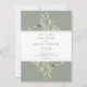 Med ömtåliga vattenfärgade gröna blad på en salviagrön bakgrund. Denna eleganta botaniska bröllopsinbjudan kan anpassas med din speciella bröllopsdagsinformation. Du kan lägga till ett foto på baksidan. Designad av Thisisnotme©