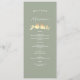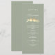Personlig sagegrön bröllopsmeny med elegant falskt guld älskande fåglar illustration och gästnamn högst upp. Ett stilrent och genomtänkt tillägg för varje platsinställning, denna meny innehåller redigerbara rätter för en formell middag. Perfekt för romantiska, moderna bröllop under våren, sommaren eller hösten. Matchar det fullständiga guld älskande fåglar bröllopssvit.