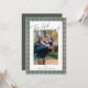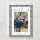 Fira Thanksgiving med detta eleganta fotokort med en sagegrön gingham-kant och det hjärtliga meddelandet ”Tacksam & Salig.” Anpassa enkelt med ditt eget familjefoto och namn för att skapa en varm och tidlös souvenir för högsäsongen. Baksidan av kortet innehåller färdiga Thanksgiving-önskningar som du kan behålla som de är eller ersätta med din egen anpassade text.