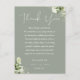 En elegant sagegrön blomstergrönska bröllopsfirande tack mottagningskort. Personliggjort med ditt speciella tackmeddelande i stilfull typografi. En speciell souvenir tack till dina gäster. Designad av Thisisnotme