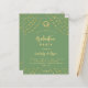 En sagegrön bakgrund dekorerad med falska guldstjärnor och en mössa. Anpassa och lägg till ett namn, festdetaljer och år. Texten Examens och namnet är skrivna med modern handstilsstil.