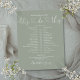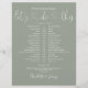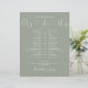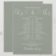 Denna stilrena bröllopsschema-tidslinje kan anpassas med era bröllopsdetaljer i chic bokstavsstil på en sagegrön bakgrund. Designad av Thisisnotme©