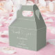 Elegant sagegrön hjärtformad svetsad bröllopspresentlåda med era namn och bröllopsdatum. Designad av Thisisnotme