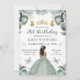 Sagegrön klänning Mörkhyllt prinsessebirthday Inbjudningar