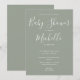 Denna eleganta, sagegröna, könsneutrala baby shower-inbjudan kan anpassas med alla dina speciella evenemangsupplysningar i modern, stilren typografi. Designad av Thisisnotme©