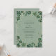 Denna design har en dämpad sagegrön palett prydd med djupa smaragdgröna och skogsgröna blomillustrationer. Handritade blommor och delikat lövverk skapar en lugn, naturinspirerad atmosfär perfekt för en skogs- eller utomhusceremoni. Subtila guldbelagda accenter i de botaniska elementen ger en touch av vintageelegans till den övergripande estetiken. Dessa jordnära toner smälter samman till en sofistikerad konstnärlig stil.