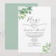 Bjud in dina nära och kära till en intim firande med vår enkla, sagegröna och vita mikrobröllopsinbjudan. Modern och elegant, denna inbjudan har delikat eukalyptusgrönska och ett charmerande silverrep-hjärta som inger en känsla av romantik. Med sin minimalistiska design sätter den den perfekta tonen för din intima sammankomst. Omfamna enkelhetens skönhet med denna chic inbjudan som lovar en hjärtlig ceremoni fylld med kärlek och glädje.