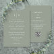 Denna sagegröna minimalistiska monogram bröllopsinbjudan kan anpassas med din information i chic typografi och din bröllopswebbadress på baksidan. Designad av Thisisnotme©