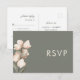 Elegant bröllops-RSVP-kort med akvarellvilda blommor på den sagegröna bakgrunden.
