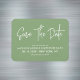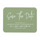 Modern kalligrafi spara datum kylskåpsmagnet i sagegrön färg. Design med en enkel minimalistisk textbaserad look.
