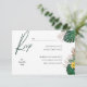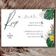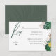 Gör din bröllopsplanering smidigare och mer stilren med detta eleganta svarsbrevskort med frodig tropisk växtlighet och modern, ren typografi. Designat med en minimalistisk vit bakgrund och accentuerat med salvia gröna botaniska detaljer, ger det en touch av naturlig skönhet till din bröllopsbrevlåda.