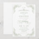 Sagegrön monogram barock bröllopsinbjudan inbjudningar