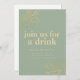 Om du älskar en enkel stil är denna inbjudan rätt för dig. Inbjudan har en elegant design med en mjuk, sagegrön bakgrund och guldglittrande blad längs kanten. I mitten är festdetaljerna vackert skrivna i en guldfärg som utstrålar sofistikation. Välkommen gäster till din nästa cocktailfest, middag eller inflyttningsfest i stil. Bakgrundsfärg och text är redigerbara.