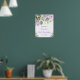 Vacker födelsedagsposter med sagegröna och lila blomsterarrangemang. Perfekt för en baby shower. Orden kan ändras för att passa dina egna detaljer eller krav