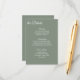Ge ytterligare information till bröllops- och mottagningsgäster i sagegrönt och vitt. Bilagan innehåller detaljer om mottagning, transport och boende i vit text på en sagegrön bakgrund. Texten kan ändras till detaljer som du väljer.