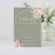 Detta eleganta bröllopskort med svarstalong har boho pampasgräs vattenfärg blommor med en chic båge som ramar in dina speciella RSVP-detaljer i stilfull typografi på en sagegrön bakgrund med din monogram-initial på baksidan. Designad av Thisisnotme©