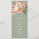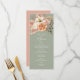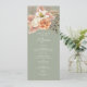 Lägg till en romantisk och elegant touch till din mottagning med detta meny kort för bröllop i sagegrön färg med delikat boho blommig konst i mjuk persika, kräm och rosafärg. Perfekt för rustika eller trädgårdsbröllop, denna mall för meny listar dina noggrant kurerade maträtter och koordinerar vackert med hela inbjudningsserien.