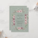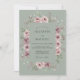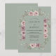 Denna design visar upp en dämpad sagegrön bakgrund skiktad med ömtåliga akvarellblommor i nyanser av dammig ros och mjuk rosa. Frodig grönska och små bärinslag flätas samman med ranunkel och små blomster för att skapa en lugn estetik. Det organiska arrangemanget ger en sofistikerad atmosfär för en romantisk säsongsbetonad ceremoni.