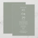 En modern, sagegrön design med detaljer från middagen före bröllopet, formulerad i en klassisk, chic typografi. Utformad av Thisisnotme