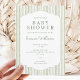 Sagegrön randig könsneutral baby shower-inbjudan