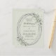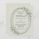 En sagegrön bakgrund. En oval falsk silverram dekorerad med sagegrön grönska. Personifiera och lägg till era namn och detaljer. Svart text.