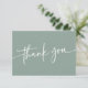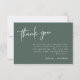 En minimalistisk tackkort med en stilren design med en jordnära sagegrön färgpalett och ett modernt teckensnitt. Detta platta kort har orden "tack" på framsidan och sedan ett redigerbart tackmeddelande på baksidan. Detta kort är det perfekta sättet att tacka gästerna för dina shower, bröllop eller party gåvor. Kombinera med något i SAM kollektionen för en sammanhängande look.