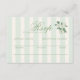 Sagegrönt bröllops-svarskort med eleganta vertikala ränder och en delikat chinoiserie-blomaccent. Utformat för att gästerna med glädje ska kunna acceptera eller avslå samtidigt som de väljer sin måltid, ger detta svarskort raffinerad trädgårds charm till din koordinerade inbjudan. Perfekt för vår- och sommarbröllop med en romantisk engelsk cottagecore-estetik.