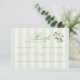 Sagegrönt bröllops-svarskort med eleganta vertikala ränder och en delikat chinoiserieblomaccent. Utformat för att gästerna med glädje ska kunna acceptera eller avslå samtidigt som de väljer sin måltid, ger detta svarskort en förfinad trädgårdscharm till din koordinerade inbjudan. Perfekt för vår- och sommarbröllop med en romantisk engelsk cottagecore-estetik.