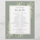 Denna stilrena botaniska gröna bröllopsschema-tidslinje kan anpassas med dina bröllopsdetaljer i chic typografi. Utformad av Thisisnotme