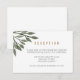 Detta informationskort för bröllopsmottagning har vattenfärg med sagegröna blad i det övre vänstra hörnet. Texten för mottagningen visas i en ljusbrun färg. Denna design är perfekt för ett utomhusbröllop fullt av naturlig skönhet.