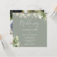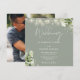 Denna eleganta sagegröna bröllopsinbjudan med vackra strängljus och blomstergrönska kan anpassas med din information i chic typografi med ditt speciella foto på baksidan. Designad av Thisisnotme