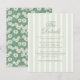 Sagegrön brölloppsdetaljer bifogad kort med eleganta vertikala ränder och en chinoiserie blomaccent för en förfinad trädgårdsestetik. Perfekt för att dela information om lokal, hotellblock, transport och bröllopswebbplats. Inspirerad av engelsk cottagecore-stil, ger denna design en mjuk romantisk touch till din inbjudan samtidigt som din information hålls organiserad och vackert presenterad.