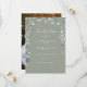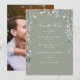 En elegant vildblomma akvarell blomsterbröllop save the date-kort med din festdetaljer i elegant vit typografi på en stilren sagegrön bakgrund. Med ditt speciella foto på baksidan. Designad av Thisisnotme