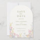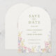 Stilrent bohoenkla vildblommor Bröllop Spara datum med sagegrön kalligrafi på elfenbensvit bakgrund