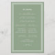 Elegant, minimalist ljusterönskt grön & vit budgetbröllopsceremoni-program har en enkel modern design med en dubbel ramad kant i krispigt vitt på en trendig ljusterönskt grön bakgrund. Traditionell, klassisk formulering ger tidlös sofistikation. Anpassa detaljerna för bröllopsceremonin för dina gäster i trendig skrift och bokstäver. Baksidan av kortet matchar med vit text på en rustik ljusterönskt grön bakgrund och handlar om ditt bröllopsteam. För bästa resultat, ersätt malldetaljer med dina egna detaljer och lämna utrymme mellan stycken som i exemplet. Använd versaler och gemener där det anges. Kontakta mig gärna på invitationsuites@gmail.com eller med meddelandefunktionen om du har frågor om denna eller någon av våra produkter