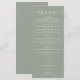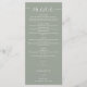 Denna eleganta meny med sagegrönt hjärtskrift för bröllop kan anpassas med din information i chic typografi. Designad av Thisisnotme©