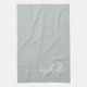 Minimalistisk modern elegant askgrön monogramnamn signatur skript anpassad personlig kökshandduk. Med anpassat namn i en handskriven svansfont kalligrafi (eller typografi) på askgrön eller dammig grön bakgrundsfärg. Dessa är lätta att anpassa. Stor snygg feminin husvärmegåva, mors dag, bröllop, även för födelsedag, bröllopsdusch och det är för tjejen som älskar unika feminina minimalistiska saker.