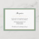 Detta mottagningskort har en minimalistisk design. Bakgrunden är vit med en sagegrön och guldkant. Designen accentueras med vacker skrivstiltext. Ge dina bröllopsgäster alla detaljer om mottagningen med detta eleganta kort.