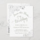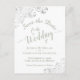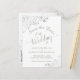 Detta vackra vykort är designat för att ge dina vänner och familj förhandsbesked om ditt kommande bröllop. Det har en enkel men elegant design med vit bakgrund och spetsigt sagegrön färgad kalligrafi och krulliga silverfärgade falska foliekrullar och svängar i hörnen. Baksidan har en söt "boka oss"-grafik samt utrymme för en webbplats och annan information.