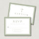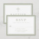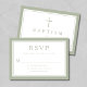 Sagegrönt religiöst kors pojke dop RSVP-kort.