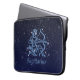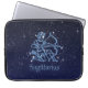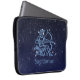 Laptop sleeve med symbolen för Sagittarius i mjuk blått silver, täckt med konstellationens stjärnor, mot bakgrund av himlar från djup midnattsblå till svart.