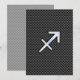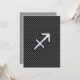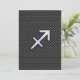 Ett krom som Sagittarius zodiac-tecken på en svart kolfiberdesign med struktur tryckbakgrund. En modern design för stadsmiljö för en underbarare anpassningsbar födelsedagspresent.