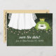 Brud med grodfurste humoristiskt spara datum bröllop vykort. Ett roligt bröllopsmeddelande vykort, lätt att anpassa fram- och baksida med din egen text. En rolig bröllopsinbjudan för den blivande bruden som alltid drömt om det perfekta sagobröllopet med sin prins charmig. Besök Jenn's Doodle World för ännu fler roliga bröllopsinbjudningar och original bröllopsplaneringstillbehör.