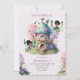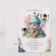 Sagobudsträdgård dopfest inbjudan med vilda blommor och en förtrollad skog. Afro sagobud med ett fantasifullt tema. Redigerbar inbjudan mall.