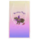 En söt och rolig design med en bedårande kapibaraväsen som håller en magisk stav i munnen, omgiven av gnistrande stjärnor. Hon bär modebetonade rosa skor och står på en mjuk övergångsbackground som blandar milda gula, rosa och lila nyanser. Denna lekfulla och drömlika illustration är perfekt för flickor som älskar magiska djur och sagoväsen.