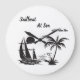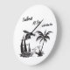 Sailboat at Sea with Palm Tree – Tropical Beach Stor Klocka