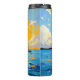 This has an illustration of a sailboat at sunset sailing on the peaceful water done in an impasto oil painting style with ai.