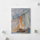 A sailboat with tall masts is depicted against a backdrop of a colorful, dynamic sky. Seagulls fly around, adding a sense of movement and freedom to the scene.